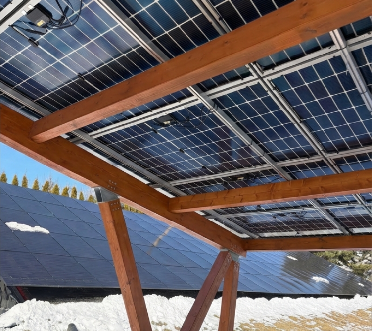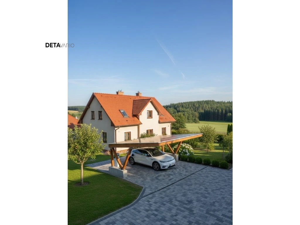 Moderní Carport se solárními panely na střeše chrání váš vůz a zároveň vyrábí energii ze slunce. Robustní nosný systém je dimenzovaný na vysoké zatížení sněhem i větrem a kvalitní zpracování dřeva zaručuje dlouhou životnost i v náročných podmínkách.