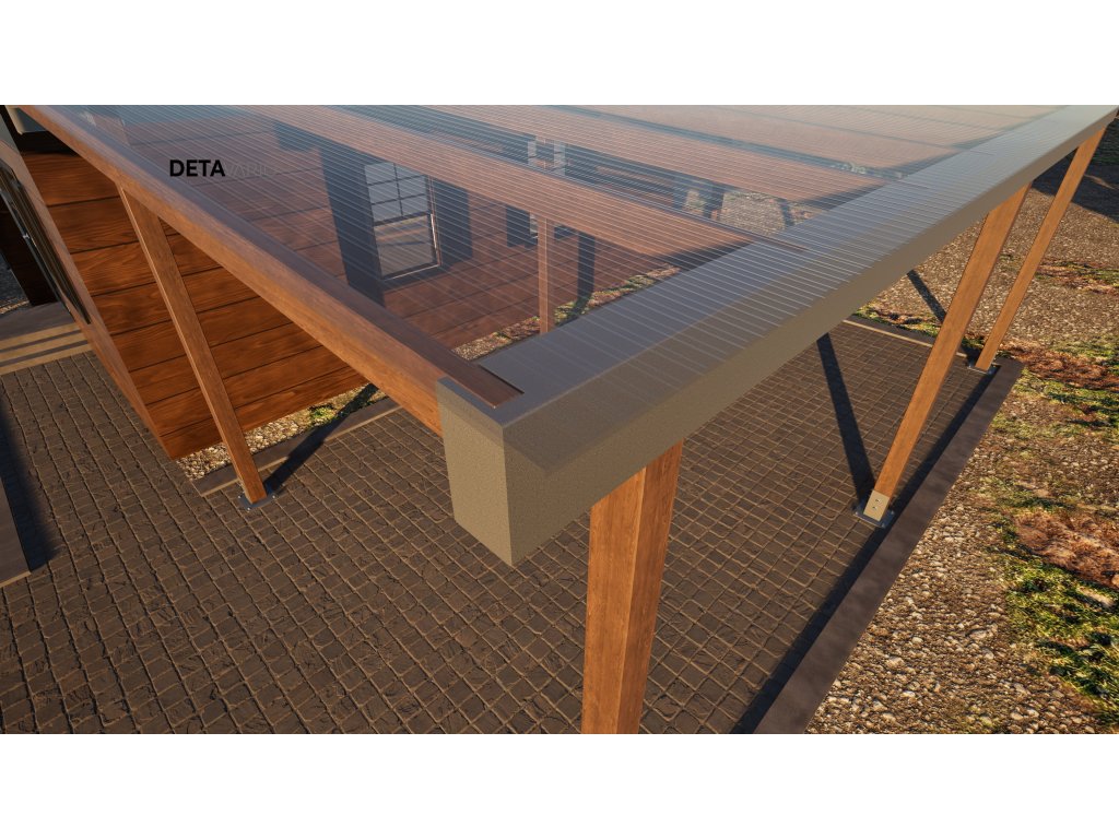 Krytinu střechy tvoří polykarbonát německé firmy LEXAN, který svou kvalitou patří k nejlepší možné volbě, a to hlavně kvůli dlouhé životnosti.