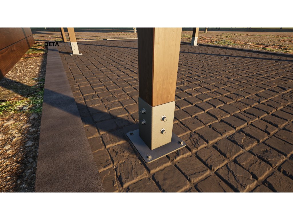 Aby ocelové patky byly dostatečně tuhé, zvolili jsme tloušťku plechu 8 mm. Ocelové patky jsou navrženy tak, aby stékající voda mohla odtékat a nehromadila se v patce jako u konkurence, což způsobuje snížení životnosti dřeva.